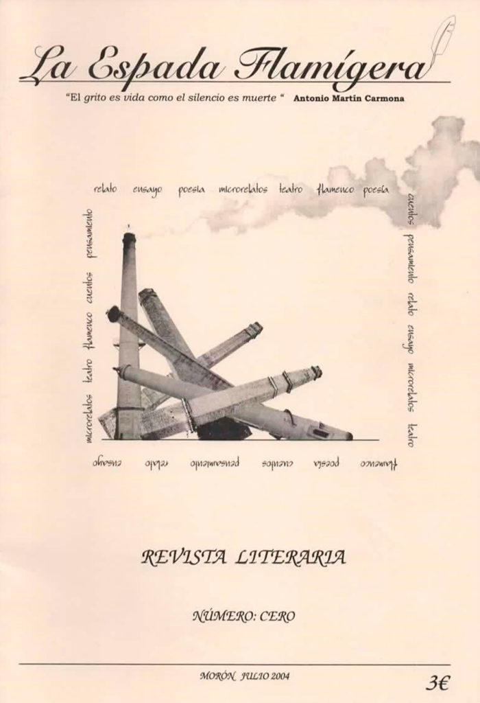 La Espada Flamígera salió a la luz en julio de 2004, editada por El Pájaro Azul y dejó de publicarse en junio de 2007, tuvo una vida de tres años. Se sacaron ocho números, colaboraron más de cincuenta autores -la mayoría de ellos locales- y no se le negó la participación a nadie, pues la postura de los que hacíamos la revista se basaba en un principio fundamental; toda creación merece un respeto, ya sea perfecta o imperfecta, sencilla o erudita: pues esa obra brota del esfuerzo realizado por una persona para reflejar sus sentimientos y los momentos vividos, pesados o soñados.